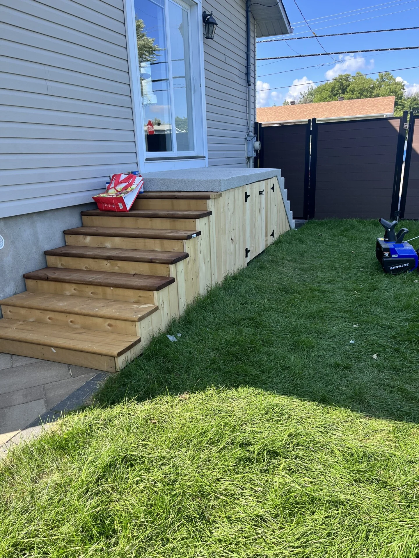 - Construction de patios : Installation professionnelle de patios en bois, composite ou pierre.